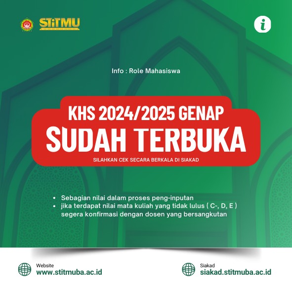 Read More KHS 2024/2025 Genap SUDAH TERBUKA Kampus STITMUBA 02 SEP 2025 s/d 17 SEP 2025 01:03 - 01:03 WIB
